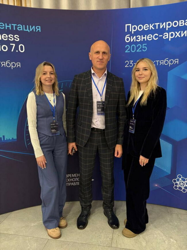 22 – 24 октября 2025 года заместитель директора по научно-исследовательской работе, заведующий кафедрой «Информационные системы и цифровые технологии» Андрей Тусков и преподаватели кафедры Саида Байбекова и Марина Гуляйкина посетили XIV конференцию «Проектирование бизнес-архитектур 2025» и презентацию программного обеспечения Business Studio 7.0, которая проходила 22-24 октября в Москва-Сити.